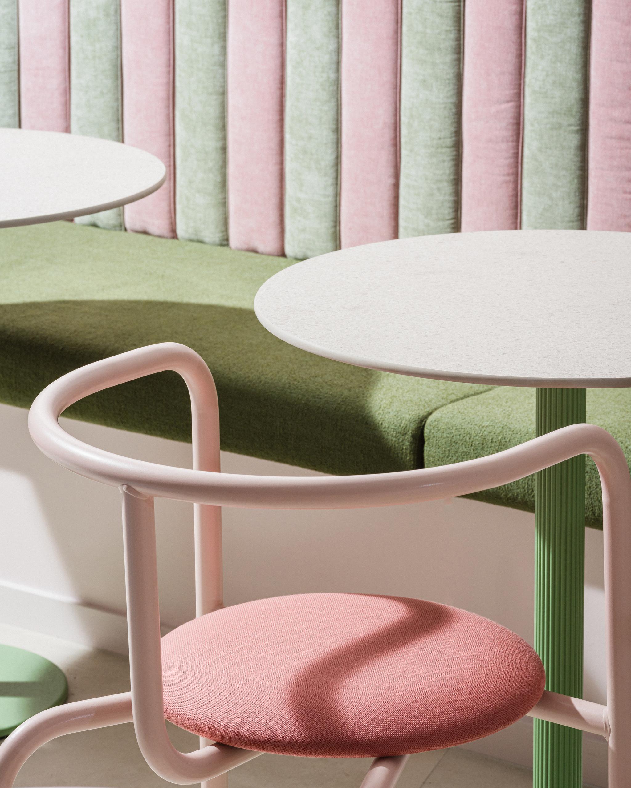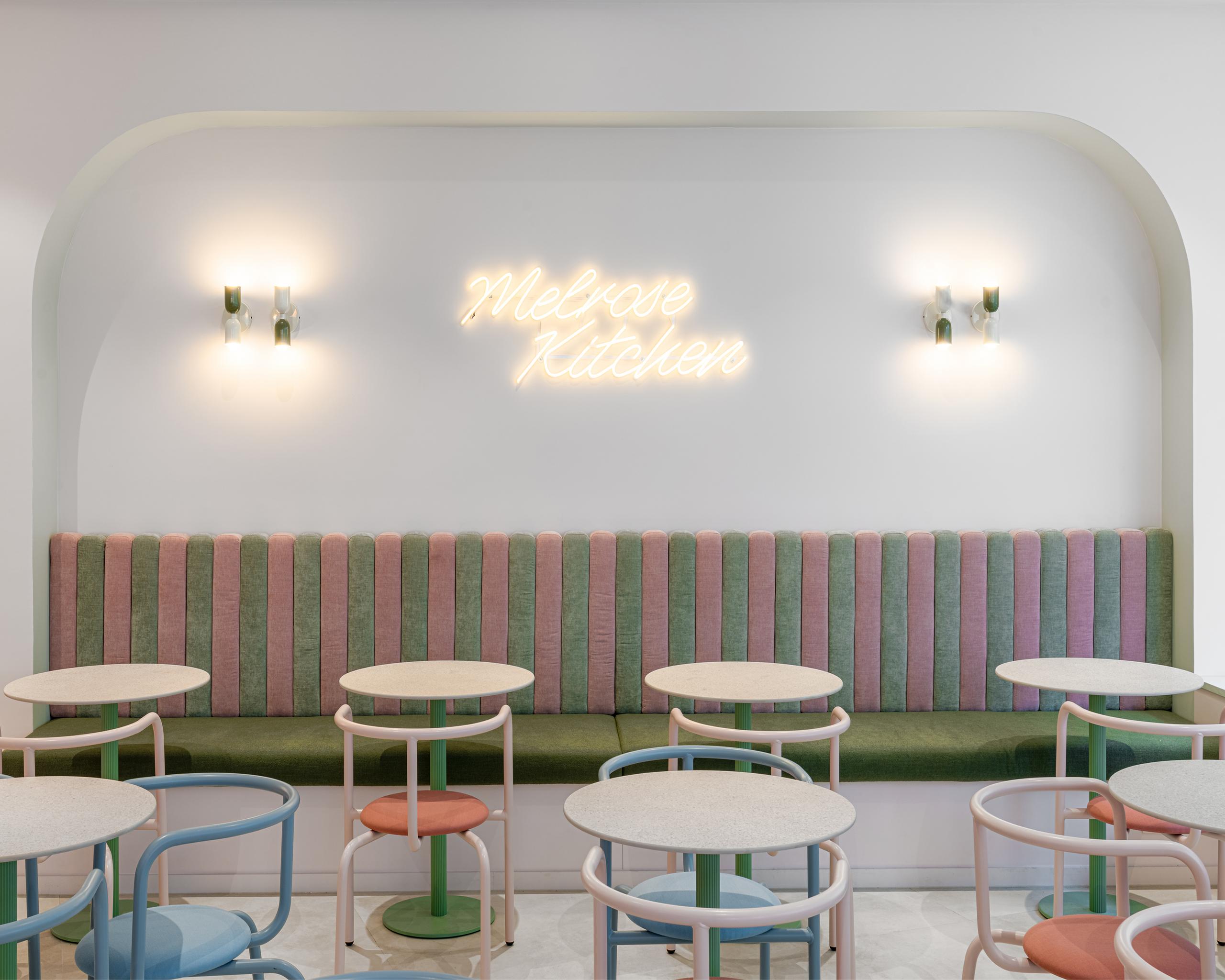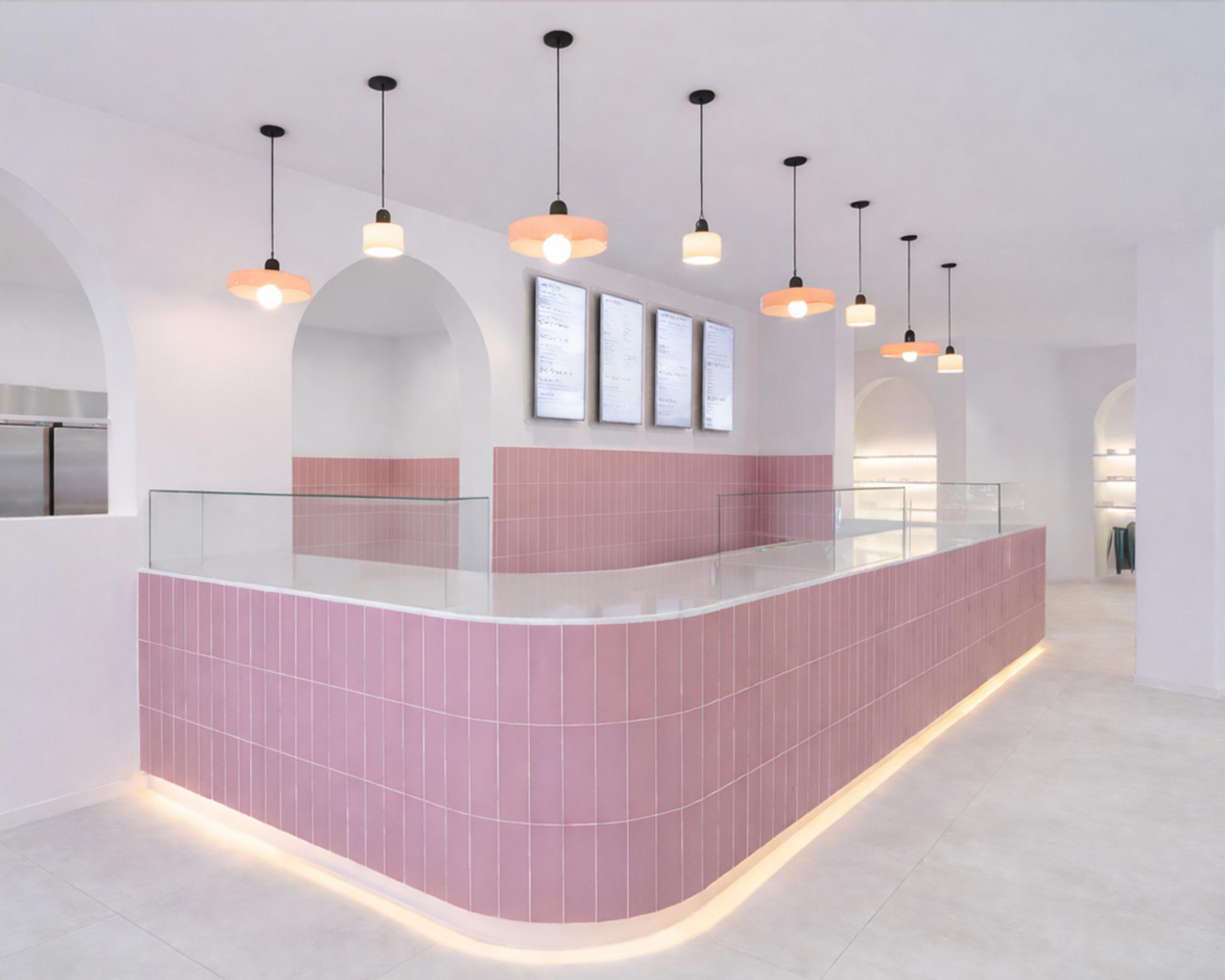 The project combines a strong identity with soft architectural lines and a refined pastel palette. From the creation of the visual universe to the architectural design and full project execution, it reflects a holistic approach where interior architecture and branding become one.