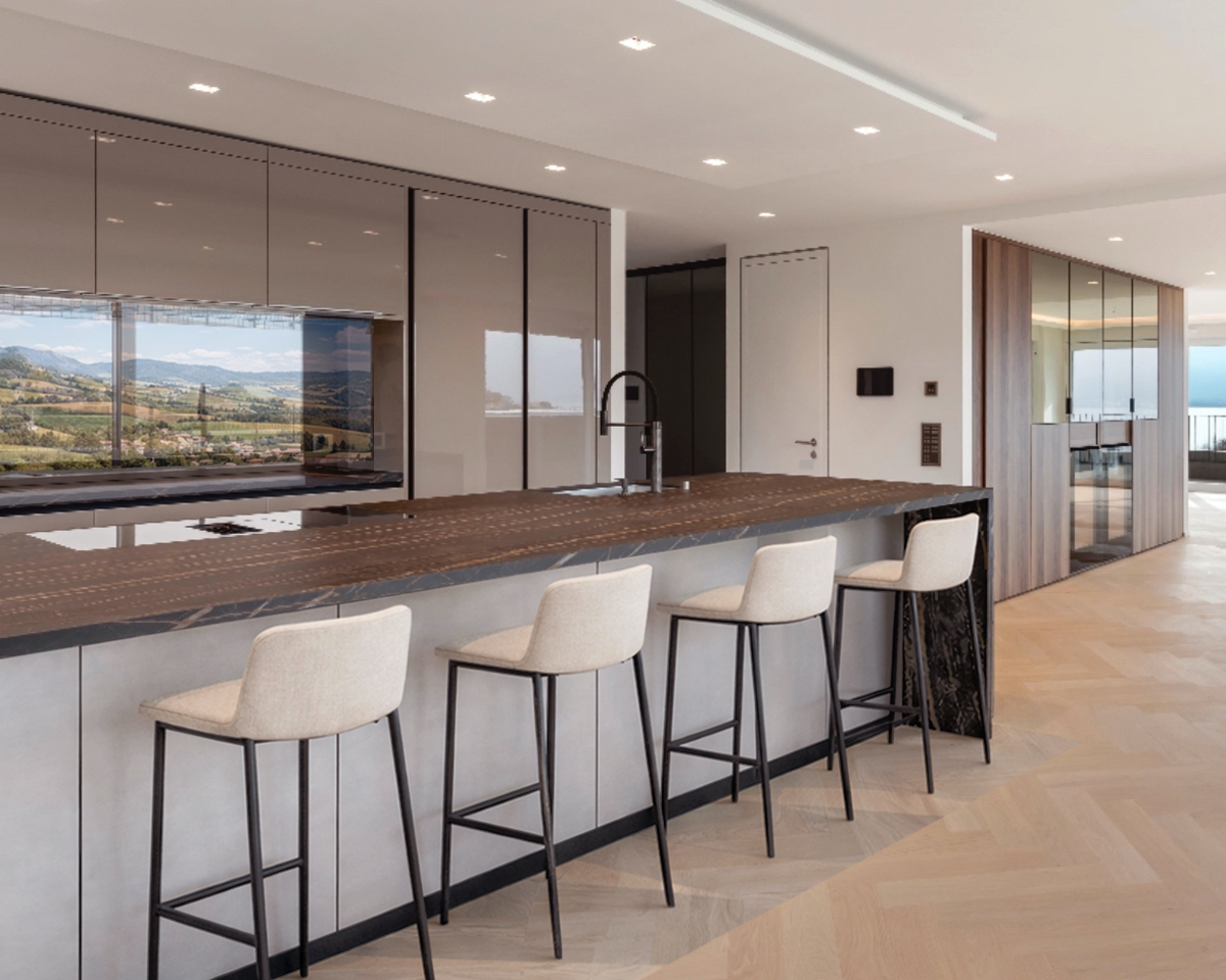 As part of this 98-apartment development by Cydonia SA, we supported the real estate developer in the design and fit-out of the sales office, conceived as a true showcase for the project, as well as in the presentation of three distinct decorative concepts enabling buyers to envision their future interiors.